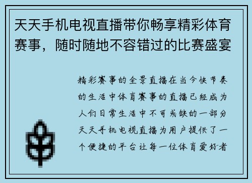 天天手机电视直播带你畅享精彩体育赛事,随时随地不容错过的比赛盛宴